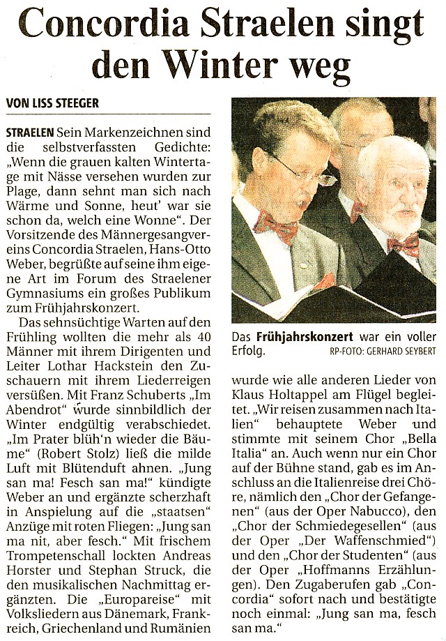 | Die Rheinische Post berichtete am 17. März 2009 von unserem Weihnachtskonzert am 15. März 2009 | |||||
