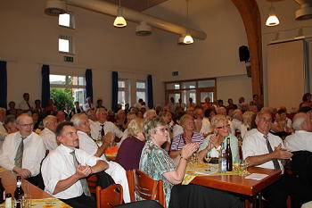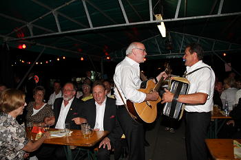 | Anschließend sorgen Heinz Sprünken und Hermann Cremers mit allen Sängern für ausgelassene Stimmung im Zelt | |