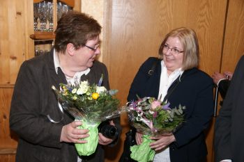 | Heinz Töchter Christa und Hildgard erhalten einen Blumenstrauß | |