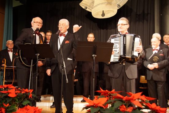 Die Sänger des MGV Concordia singen und spielen mit ihren Enkelkindern im weihnachtlich geschmückten und voll besetzten Straelener Forum |
