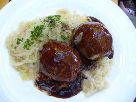 im Biergarten Domhof bei Pfälzer Wein, Bier, Saumagen, Leberknödel und